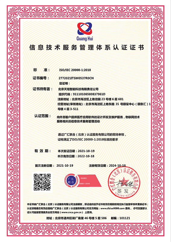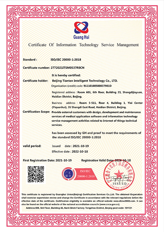 信息技術(shù)服務(wù)管理體系認(rèn)證證書(shū)