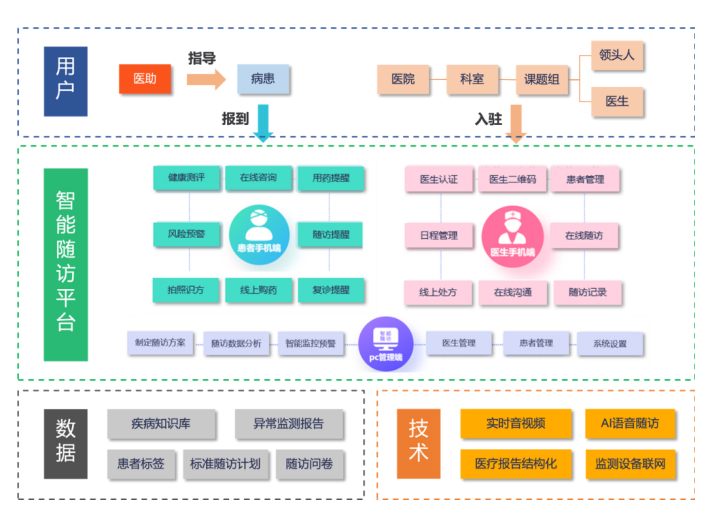 天坦智能開發(fā)的慢病管理運(yùn)營服務(wù)是一套完整的心血管隨訪標(biāo)準(zhǔn)體系,配合適用性極強(qiáng)的醫(yī)生端可配置界面,滿足絕大多數(shù)開展冠心病介入的醫(yī)療機(jī)構(gòu)需求,同時(shí),基于專家隨訪團(tuán)隊(duì)之間的協(xié)作,建立上下聯(lián)動(dòng)的醫(yī)生互動(dòng)機(jī)制,為隨訪的患者提供專業(yè)的管理方案。匹配有人工智能為核心的隨訪管理機(jī)制,可自動(dòng)化發(fā)送患者所需要信息,量表等隨訪內(nèi)容,具備機(jī)器學(xué)習(xí)功能,針對(duì)不同醫(yī)院形成不同模式的隨訪系統(tǒng)配置,匹配個(gè)性化的醫(yī)院隨訪體系,最終以患者交流平臺(tái),建立以患者需求為中心的線上服務(wù)體系,包括專家線上咨詢、藥品直送、可穿戴式設(shè)備居家監(jiān)護(hù)、護(hù)理居家康復(fù)及圍繞手術(shù)全周期的保險(xiǎn)支付產(chǎn)品。形成以醫(yī)學(xué)+智能+個(gè)性化+支付功能為一體的新一代的慢病管理平臺(tái)。