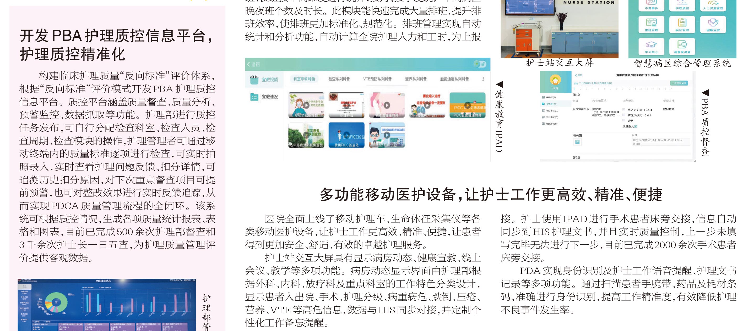 北京天坦智能全面建設湖南省腫瘤醫(yī)院智慧護理,從醫(yī)院頂層設計制定“智慧病房”建設項目,深耕細作開發(fā)出集護理管理和臨床服務為一體的智慧病區(qū)綜合管理平臺,為臨床提供便捷、精準、高效的信息系統(tǒng)支撐,實現護理質控精準化、護理管理數據化,促進醫(yī)院護理高質量發(fā)展。