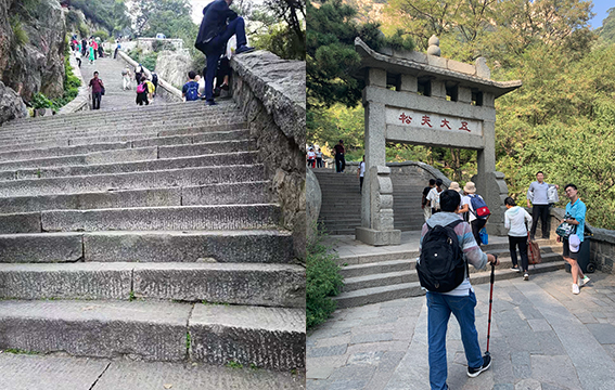 眼前泰山的巍峨,綠意蔥蔥的容貌,隨山勢而上的臺階,讓大家由衷贊嘆。大家摩拳擦掌,誓要做登頂?shù)谝粋€人,去感受那“浮在云霧中,一覽眾山小”的趣意。事實上,這個海拔1524米的天然氧吧給我們的肺的確做了一個很棒的spa,從內到外的舒暢,從外到內的滿足,感嘆工匠們巧奪天工的設計。