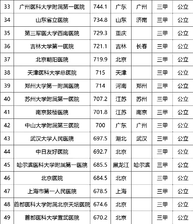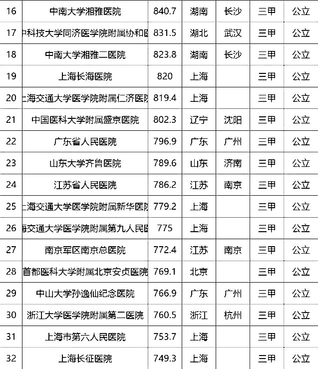 “100強”榜單中,入圍最多的三個省市分別是北京(16家醫(yī)院)、上海(13家醫(yī)院)、廣東(9家)。“100強”共覆蓋32個城市,包括4個直轄市(36家醫(yī)院)、23個省會城市(59家醫(yī)院)、5個地級市(5家醫(yī)院)。總體看,城市的醫(yī)院平均得分和上榜機構(gòu)數(shù)有一定的相關(guān)性,上榜機構(gòu)數(shù)多的城市一般得分均值較高,說明這些城市醫(yī)院整體實力較高。